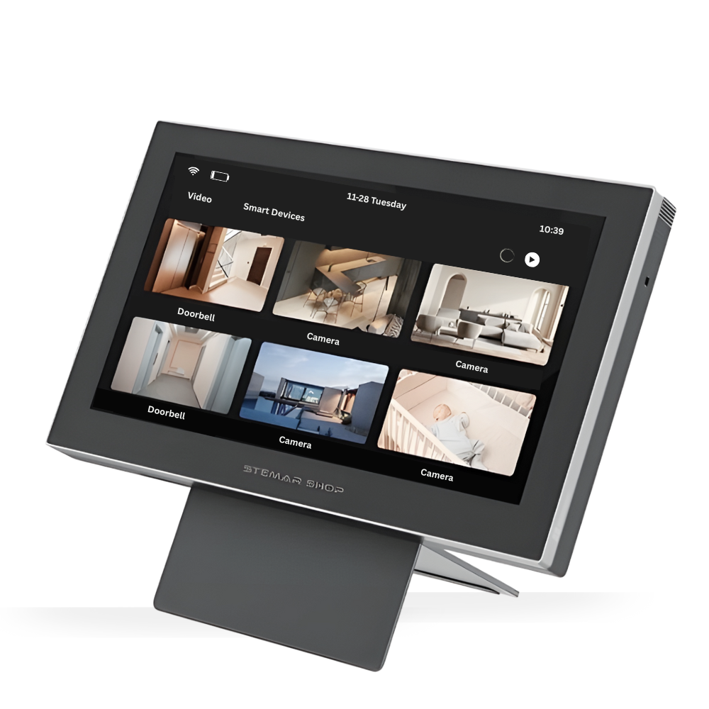 The EZVIZ SD7 is a 7-inch smart touch screen designed to centralize and simplify home security management. It integrates seamlessly with EZVIZ Video Doorbells, Smart Locks, and cameras, providing a single interface for live viewing, playback, and device control. Its wireless setup and portable design make it a flexible addition to any modern home.