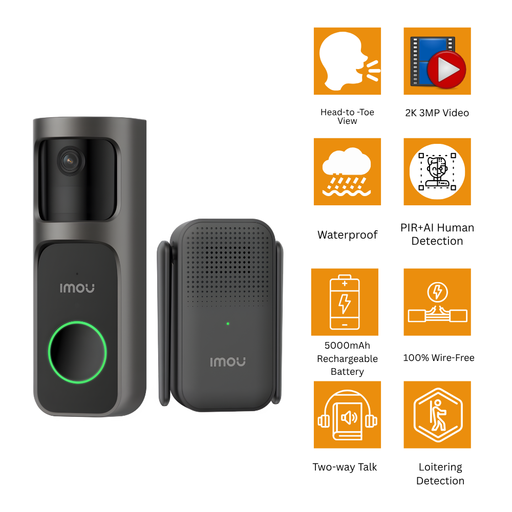 The IMOU Doorbell 3 Kit is a smart, wire-free video doorbell designed for flexible installation and wide-angle panoramic coverage, making it ideal for home entrances, apartments, or offices. It features a high-resolution camera that captures clear video both day and night, along with intelligent motion detection to alert you of visitors or unexpected activity. The built-in two-way communication system allows you to speak with guests or delivery personnel remotely. Powered by a rechargeable battery, the doorbell ensures reliable performance without complicated wiring. Compact, durable, and easy to set up, the IMOU Doorbell 3 Kit provides seamless home monitoring, enhanced security, and convenient remote access from anywhere.