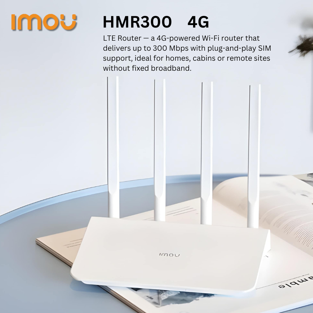 The IMOU HMR300 is a versatile 4G LTE router designed to provide stable, high-speed internet connectivity in locations without traditional broadband. With support for 4G SIM cards and wired WAN backup, it ensures reliable Wi-Fi for homes, offices, shops, farms, or remote sites. Its dual-band Wi-Fi and multiple antennas provide strong coverage and stable connections for multiple devices, including IP cameras, smart home gadgets, and PCs.