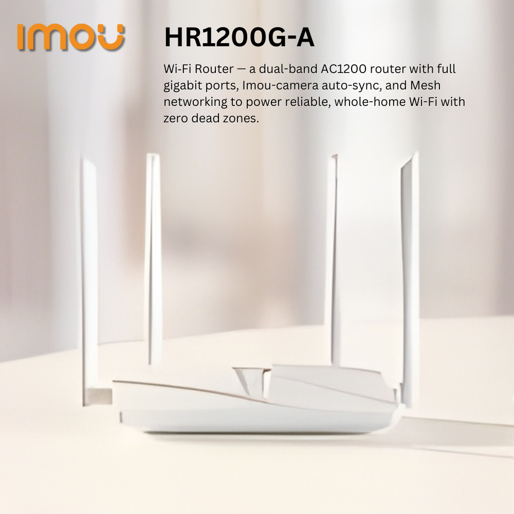 The IMOU HR1200G-A is a high-performance Wi-Fi 6 router designed to provide fast, stable, and reliable internet for homes, offices, shops, and smart-home setups. With support for the latest Wi-Fi 6 (802.11ax) standard, it delivers high-speed connectivity for multiple devices, including IMOU cameras, smart home gadgets, PCs, and streaming devices. Its advanced features ensure smooth video surveillance, low latency, and seamless whole-home coverage.