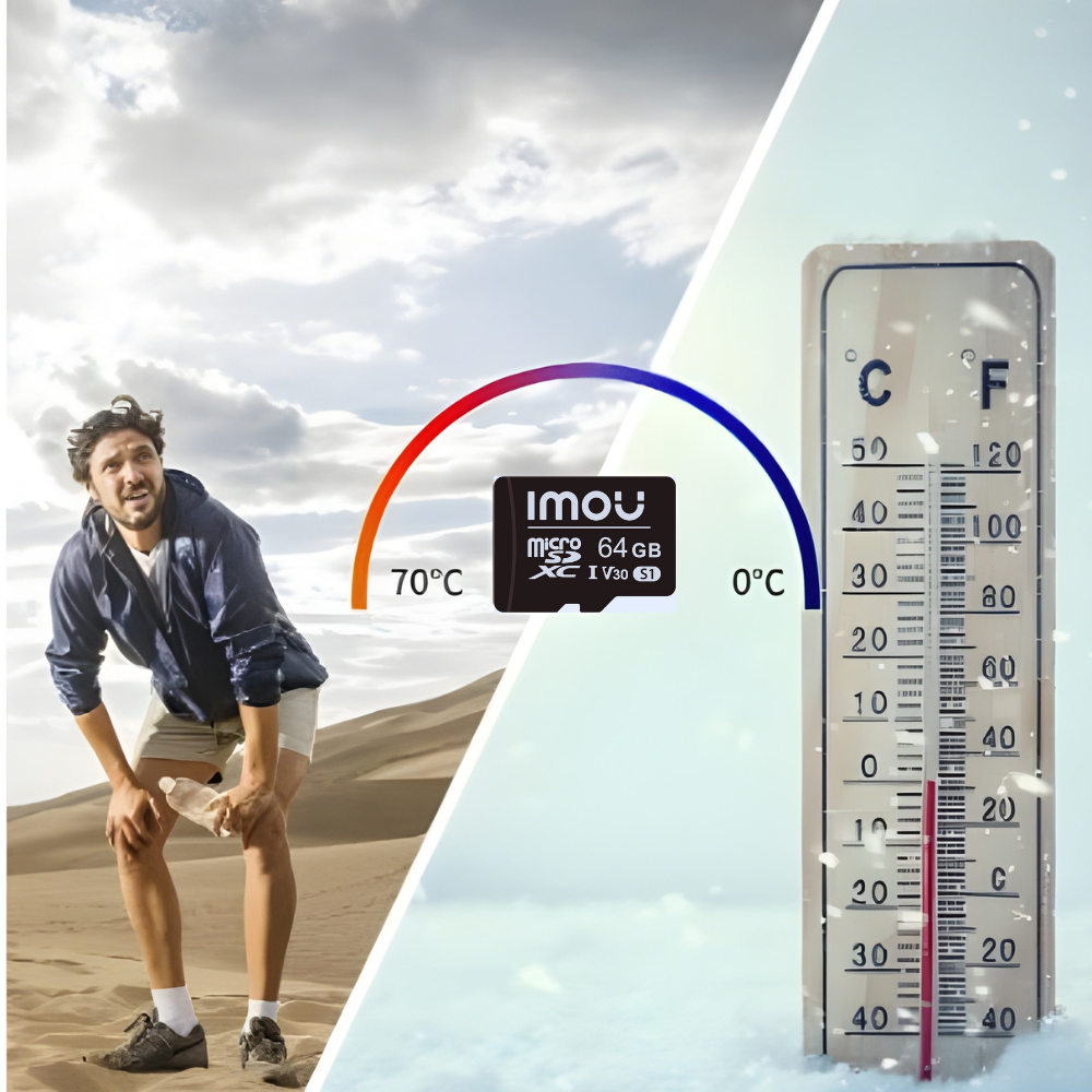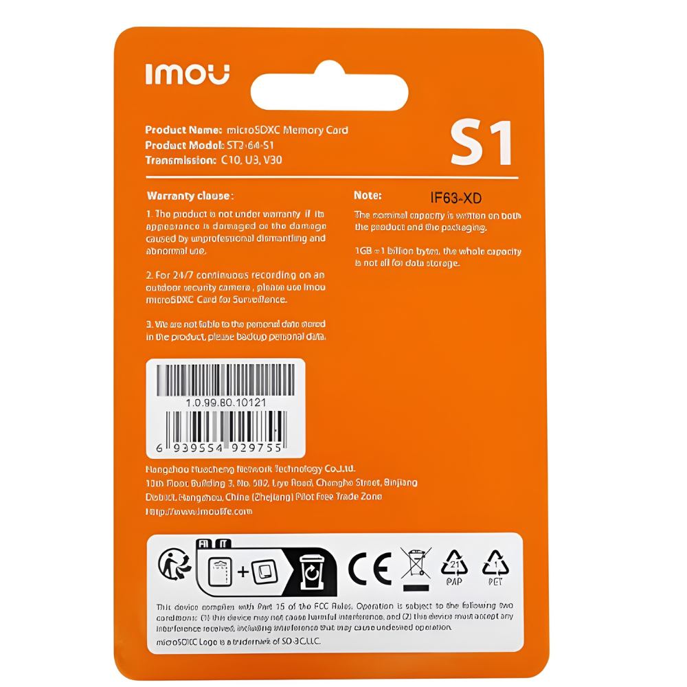 The IMOU ST2‑64‑S1 64GB MicroSD Card delivers a balanced combination of capacity, speed, and reliability — making it suitable for continuous video recording and surveillance. Its performance is sufficient for standard CCTV systems, and its compatibility ensures it can be used in IP cameras, video intercoms, and similar devices.
