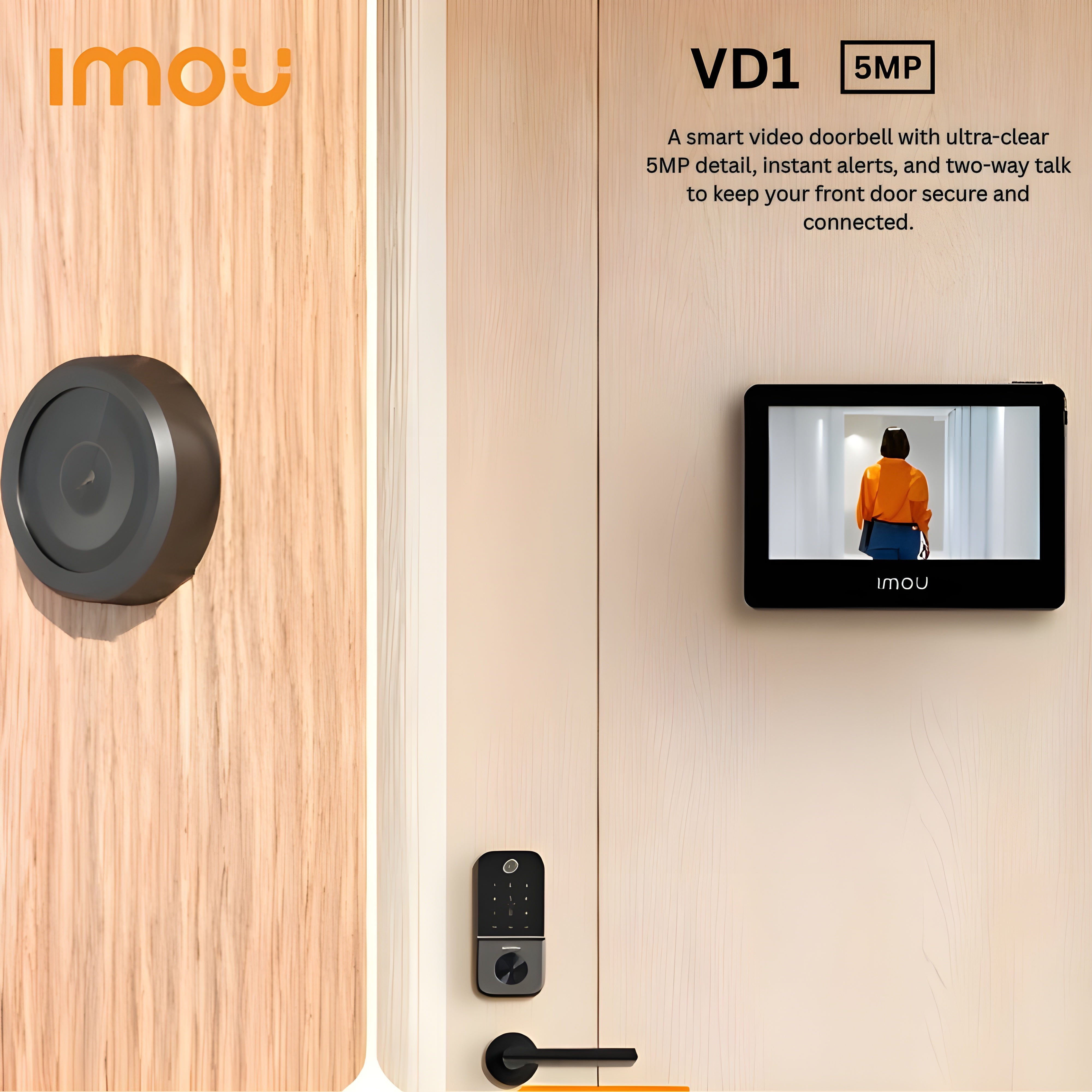 The IMOU VD1 5MP Smart Video Door Viewer Brings advanced security to your front door with Always-on Video (AOV) technology, ensuring continuous event coverage without missed activity. Featuring 5MP QHD resolution (2880 × 1620) and a 4.3-inch color screen, it delivers clear, wide-angle visuals instantly inside your home.