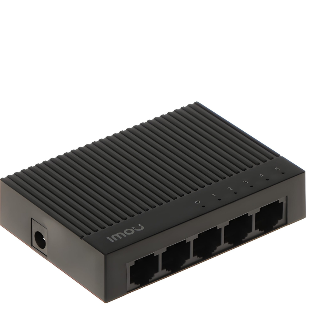The IMOU SF105C is a compact, unmanaged 5-port Ethernet switch designed to expand your wired network quickly and reliably. It provides five 10/100 Mbps RJ45 ports for connecting multiple devices such as IP cameras, computers, printers, or smart home hubs, making it ideal for small offices, home networks, or surveillance setups. With plug-and-play simplicity, automatic speed negotiation, and LED link indicators, SF105C ensures fast and stable connectivity without any configuration required. Its lightweight plastic housing and small footprint enable flexible placement on desktops or mounting on walls, delivering a dependable and user-friendly network expansion solution.