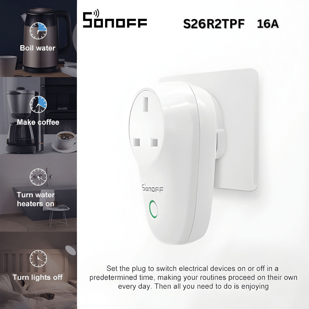 The SONOFF S26 TPF is a high-power Wi-Fi smart plug designed to give you full control over your home appliances with ease and reliability.