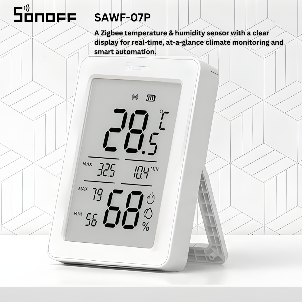 The SONOFF SNZB-02DR2 Zigbee Temperature & Humidity Sensor is a smart environmental monitoring device designed to deliver accurate real-time temperature and humidity data directly to your smart home system. Featuring a clear LCD display, it allows instant on-device reading while continuously syncing data to your Zigbee hub.