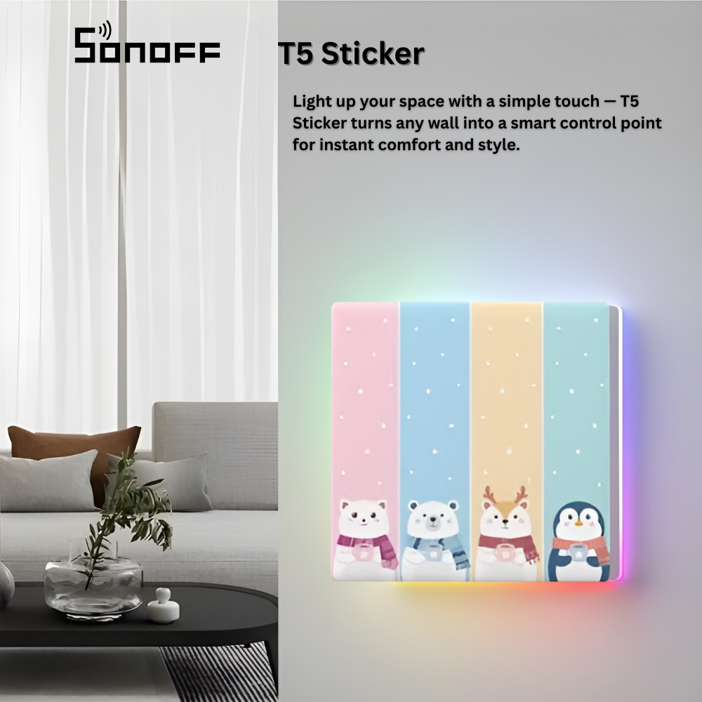 Thanks to its adhesive, wire-free design, the T5 Sticker can be placed almost anywhere—on walls, furniture, or used as a portable controller. It’s an ideal solution for households looking for simple, physical control, especially for children, elderly users, or shared spaces. Integrated with the eWeLink App, it enhances daily automation by delivering quick, reliable responses that make your smart home more practical, efficient, and enjoyable .