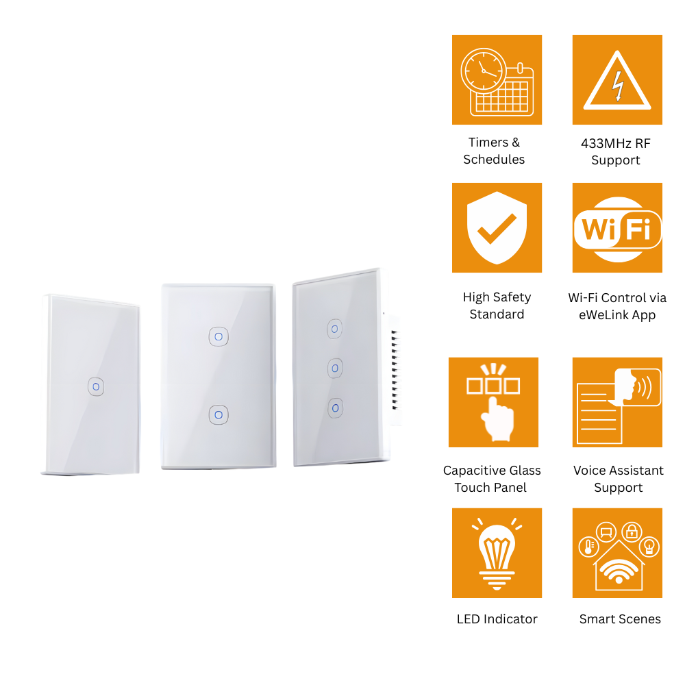 The SONOFF TX Gen2 Smart Touch Wall Switch is an ideal upgrade for anyone looking to modernize their lighting system with a reliable and stylish smart solution. Its Matter compatibility ensures long-term usability across different smart home platforms, while the eWeLink app provides powerful remote control and automation options. The combination of a premium glass touch panel, flexible multi-gang support, and advanced features such as Detach Relay Mode makes it both practical and future-proof. Whether for residential or smart building applications, the TX Gen2 delivers convenience, control, and a refined modern appearance.