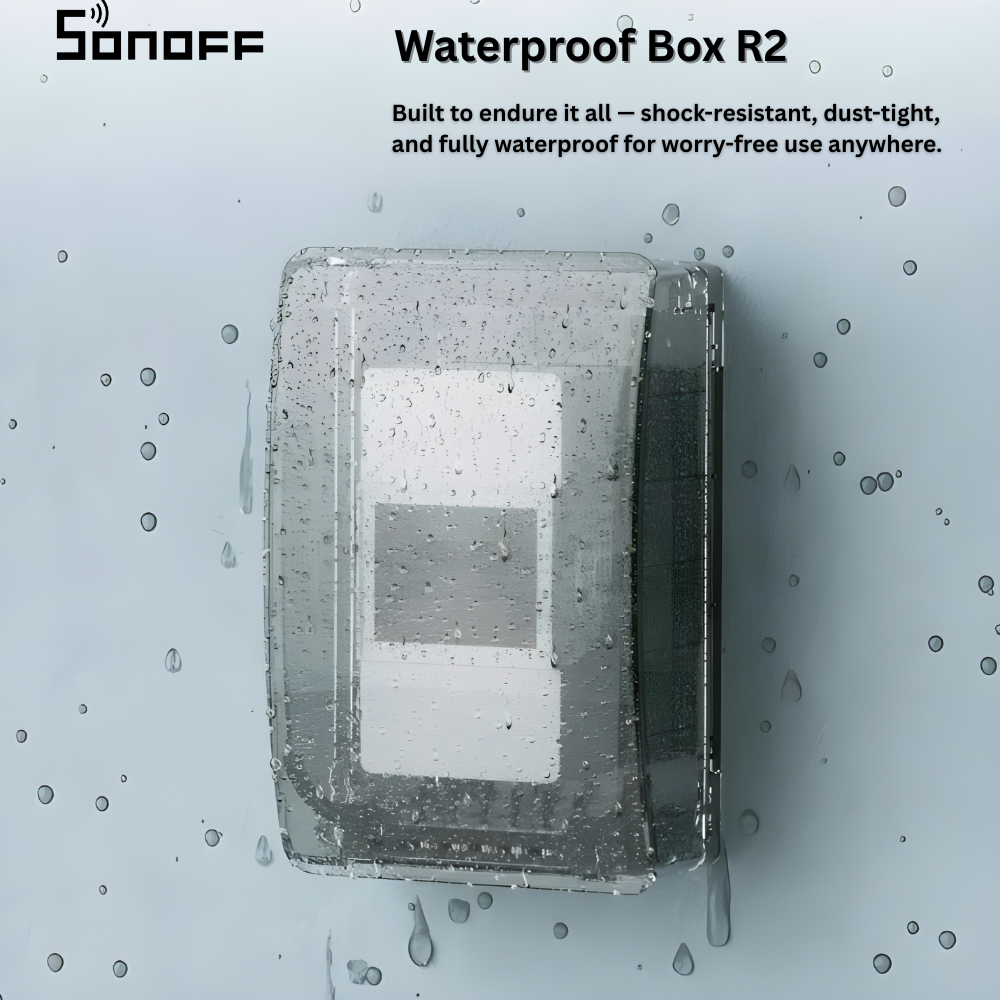 SONOFF Waterproof Box is protect your SONOFF smart switches and small electronic devices from rain, dust, moisture, and harsh outdoor conditions with the SONOFF Waterproof Box — a rugged, weather-resistant enclosure built for reliable performance. Designed to house SONOFF modules securely, this waterproof box shields your equipment from splashes and environmental elements, ensuring safe operation whether installed in gardens, garages, workshops, or other outdoor spaces.